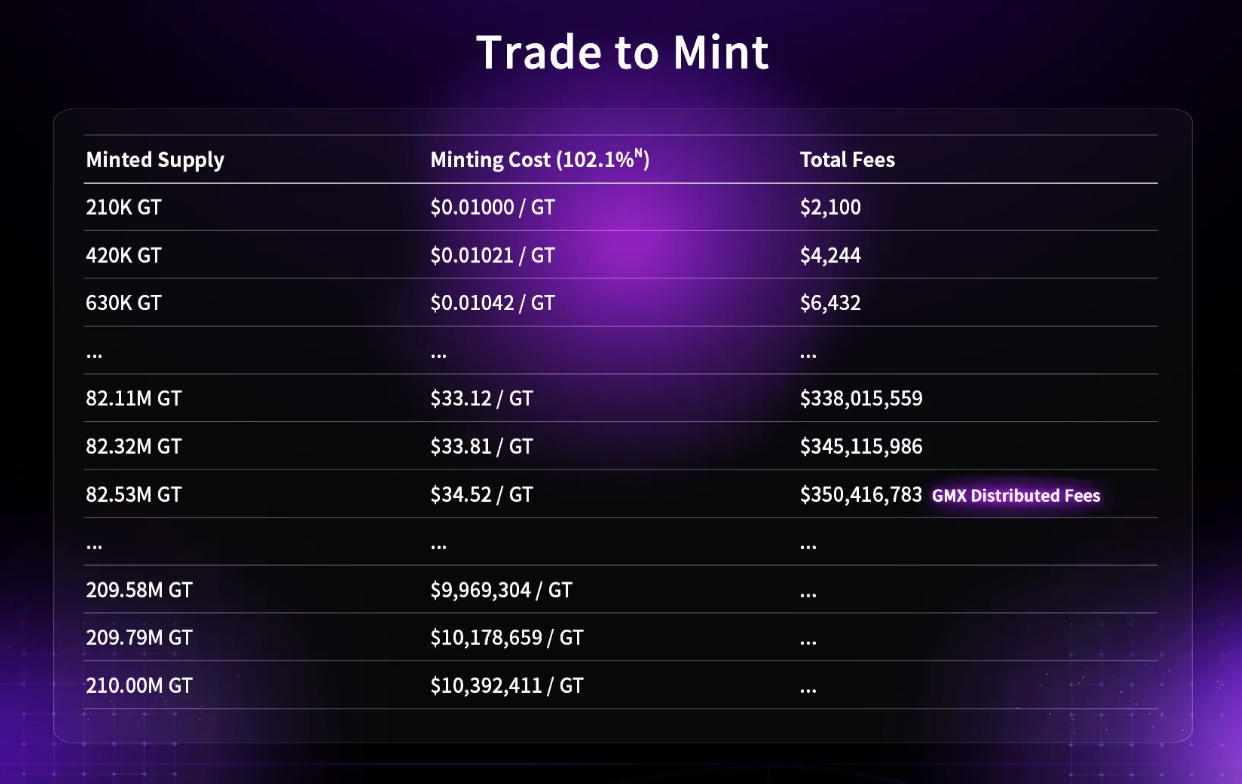 Similar to Bitcoin's halving mechanism, GT's minting difficulty increases over time. Instead of halving rewards every four years, GT adopts smaller, more frequent increments to create a smoother growth curve.